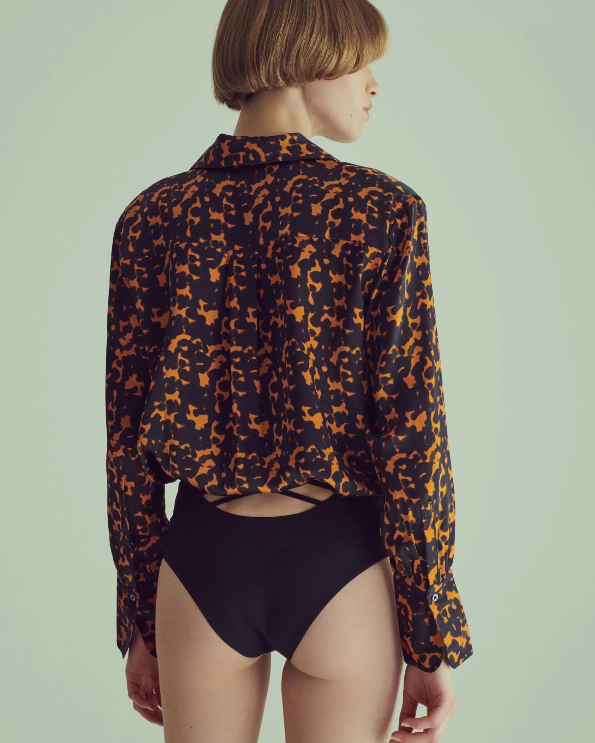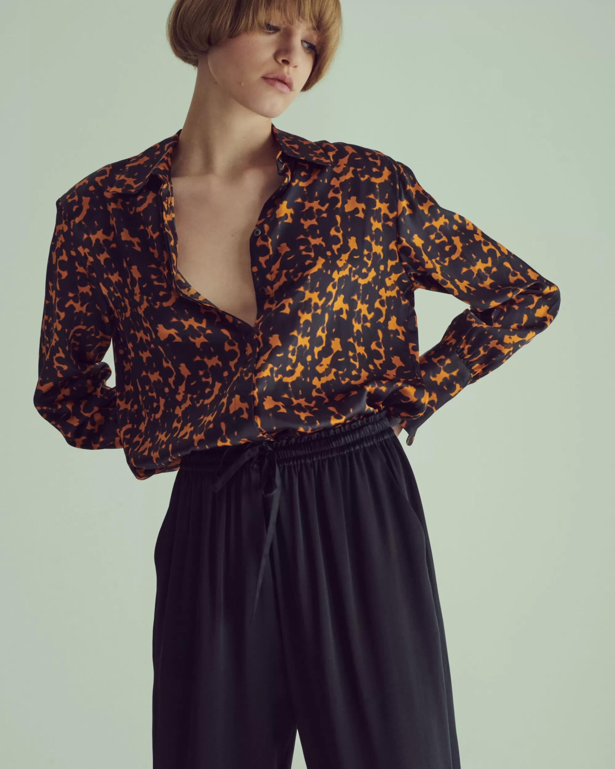 Chemise manches longues en satin de soie. Epaulettes mode. Imprimé exclusif LIVY