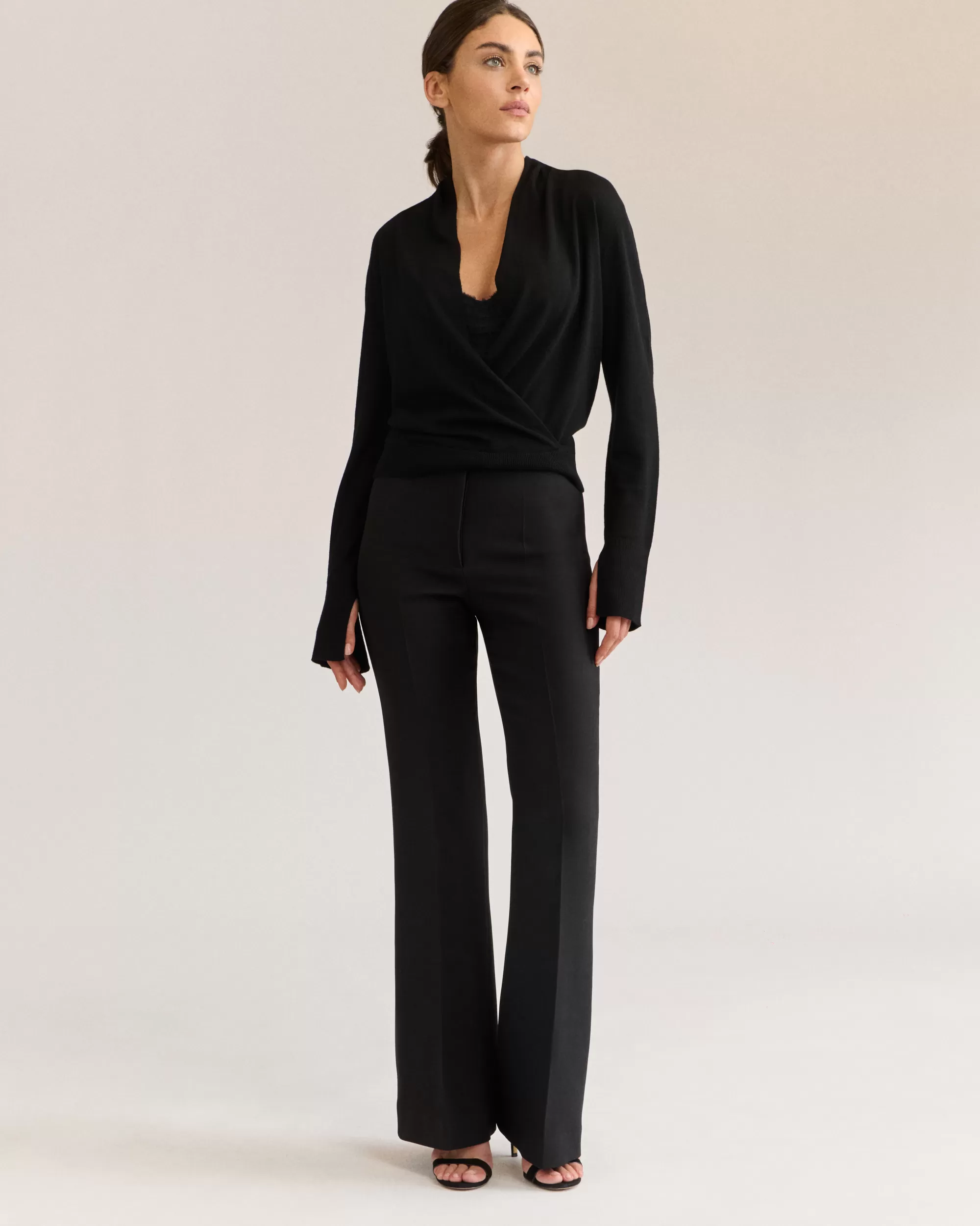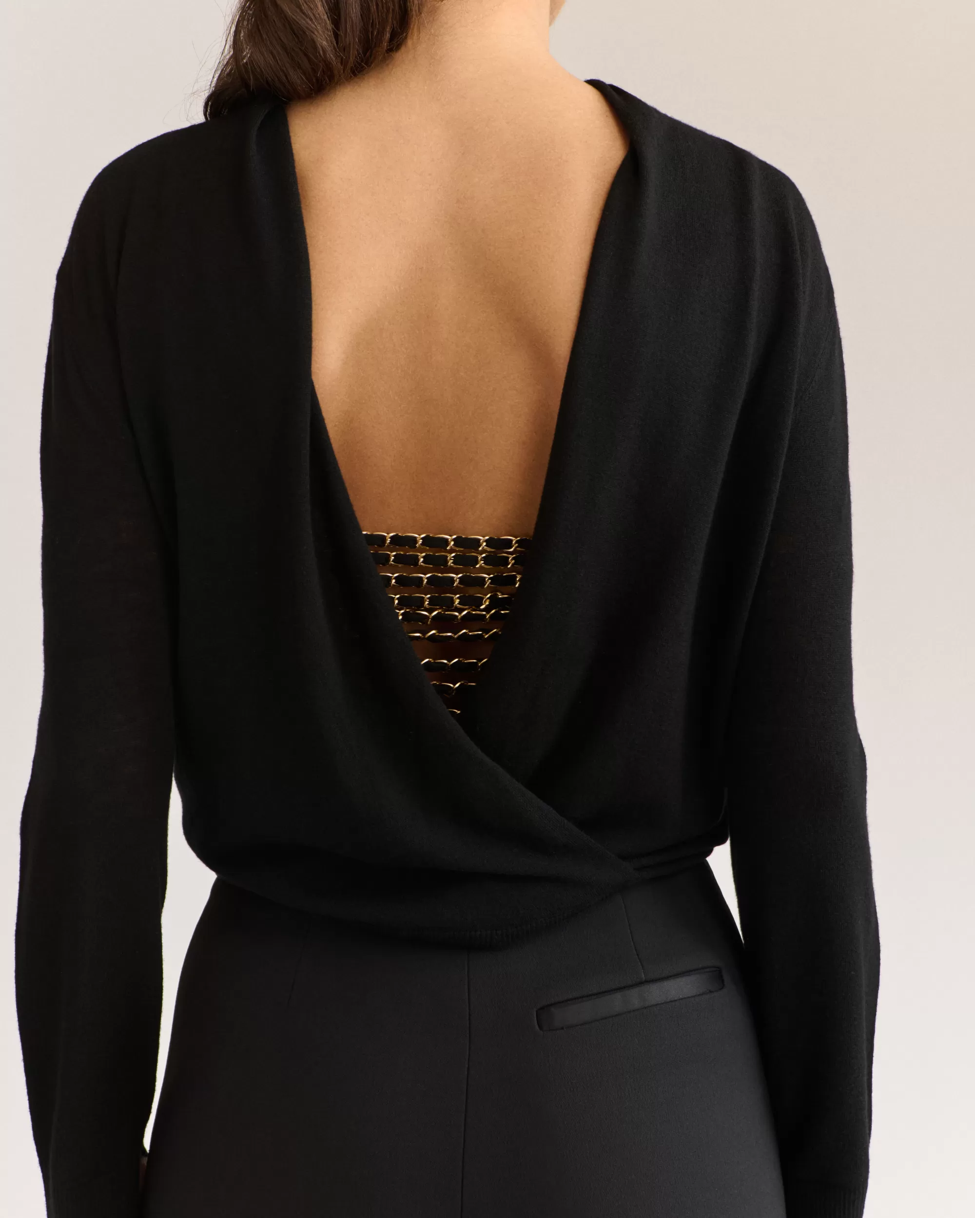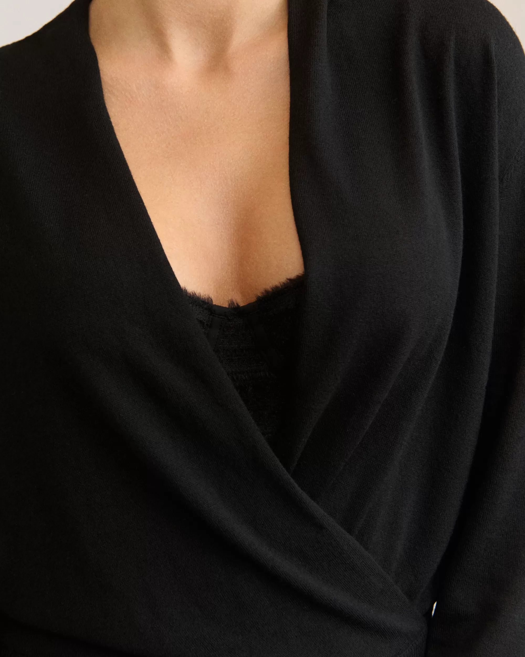– Pull ultra feminin en laine et viscose- Décolleté profond effet cache cœur à porter devant ou au dos.- Manches lon…